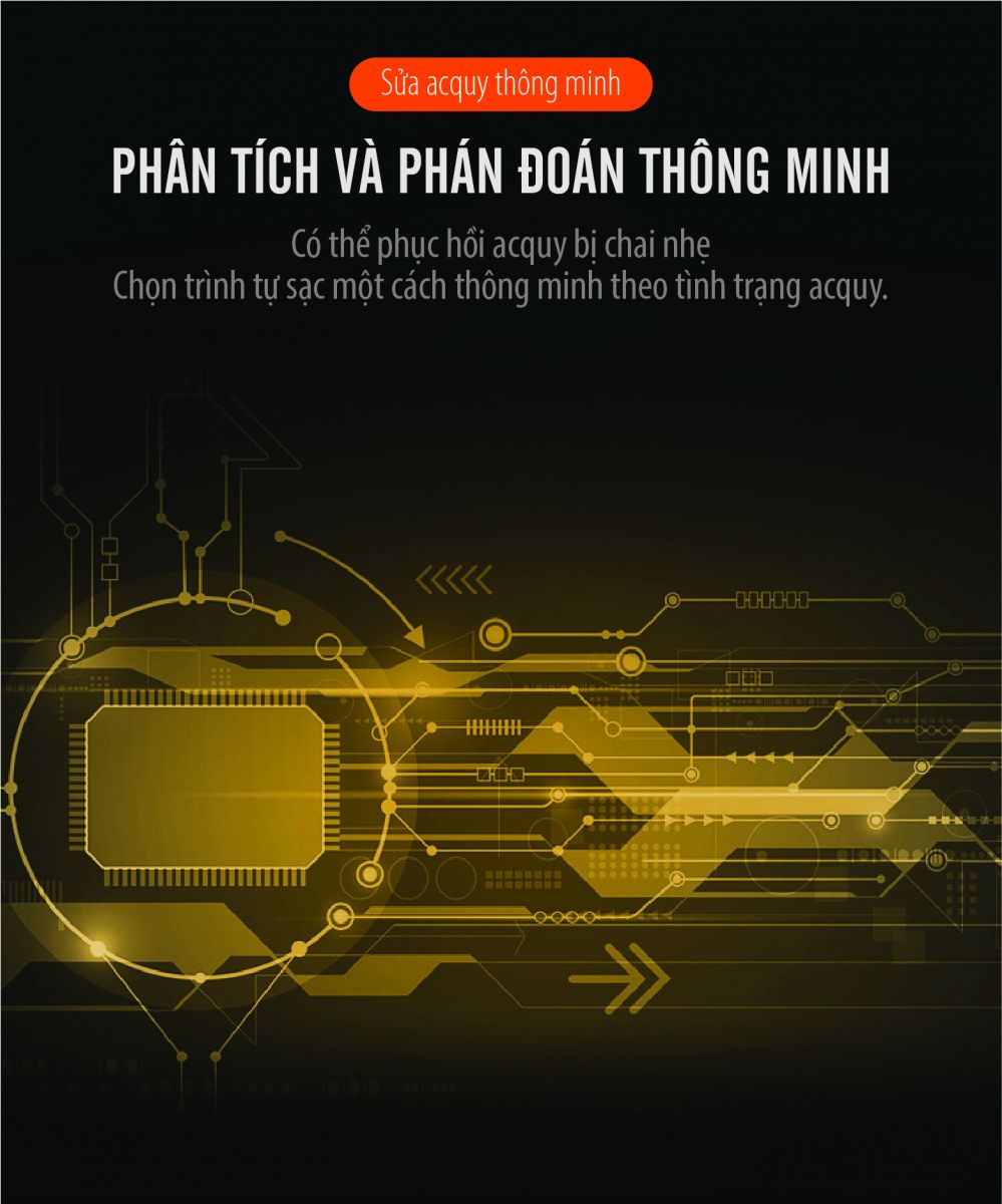 - Phân tích và phán đoán thông minh. Chọn trình tự sạc một cách thông minh theo tình trạng acquy