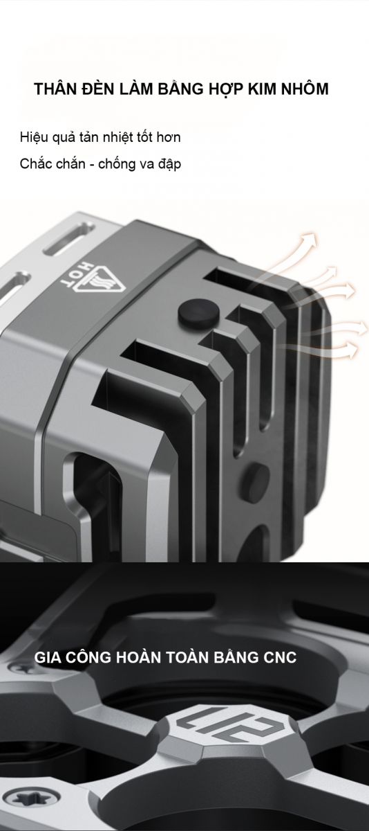 + Thân đèn sẽ sinh nhiệt cao trong quá trình hoạt động, không chạm vào để tránh bị bỏng.