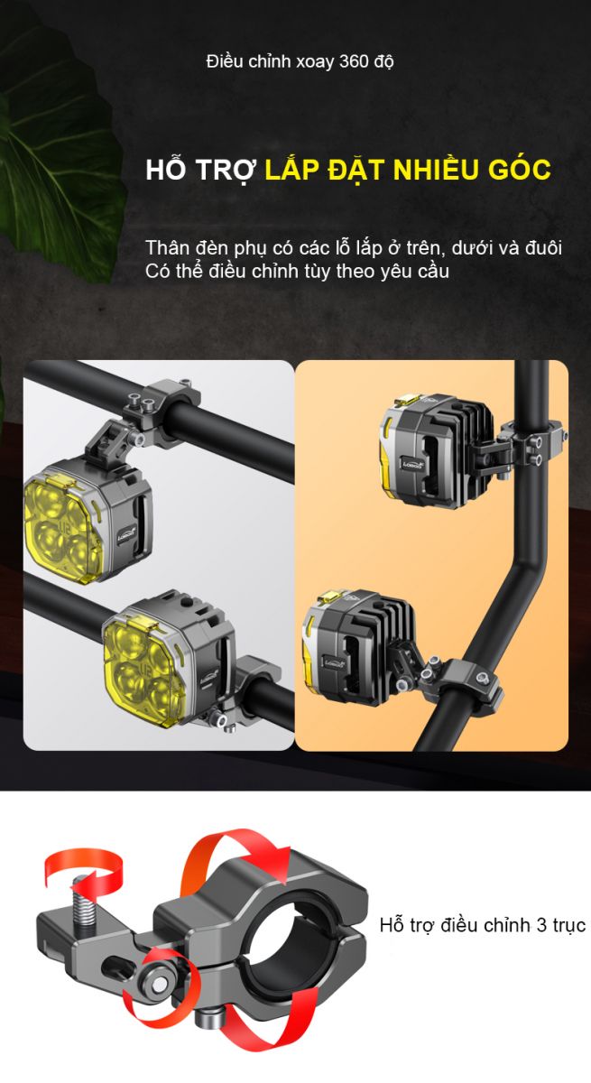 + Vui lòng lắp đèn vào thân xe hoặc thanh bảo vệ, nghiêm cấm lắp ở phần dưới của giảm xóc.