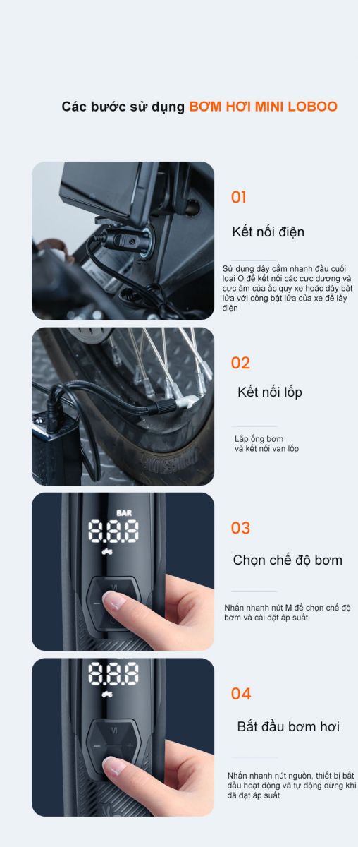 Lưu ý: Không sử dụng bơm liên tục quá 10 phút, quá thời gian trên dễ làm hỏng piston của bơm do quá nhiệt.