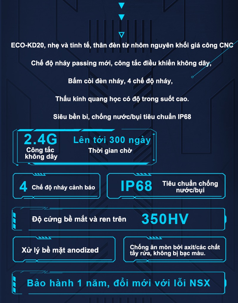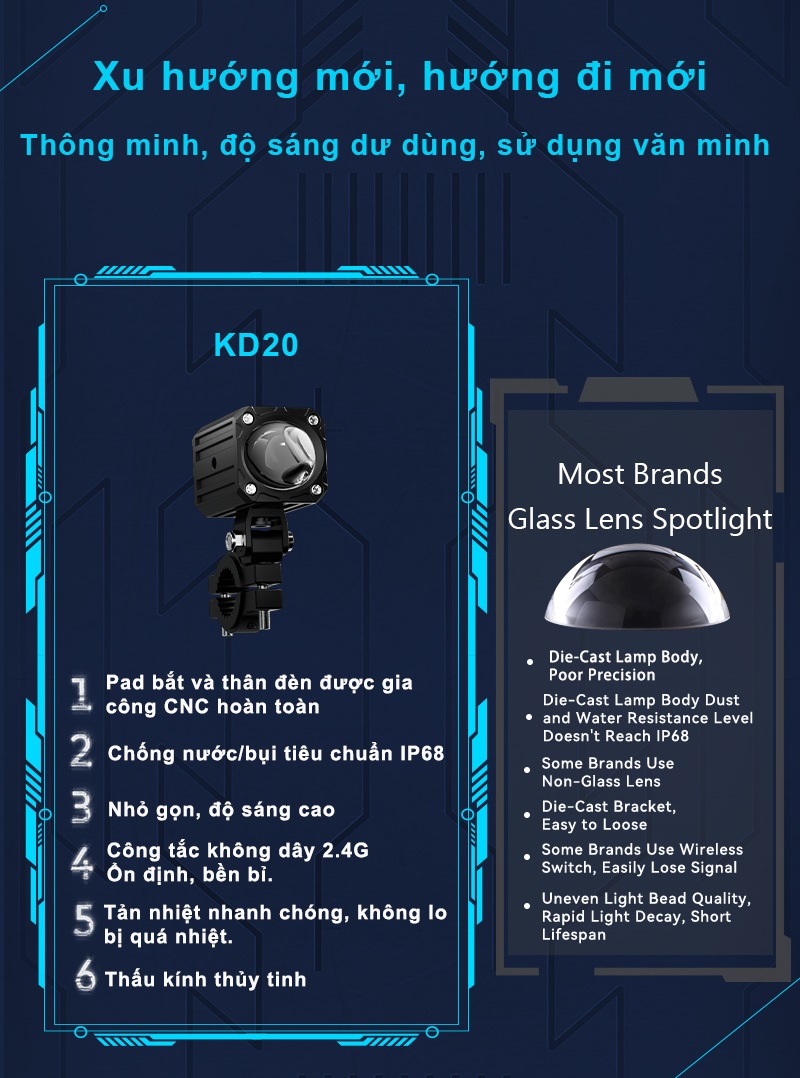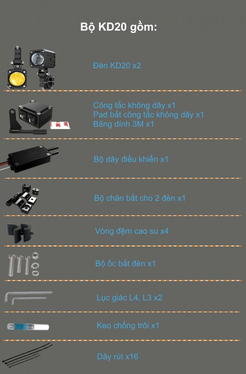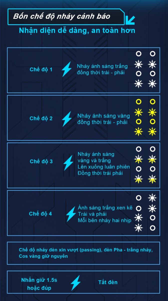 Nhiệt độ màu: pha trắng 6000K, cos vàng 2800K, pha + cos 4000K
