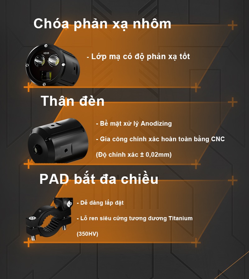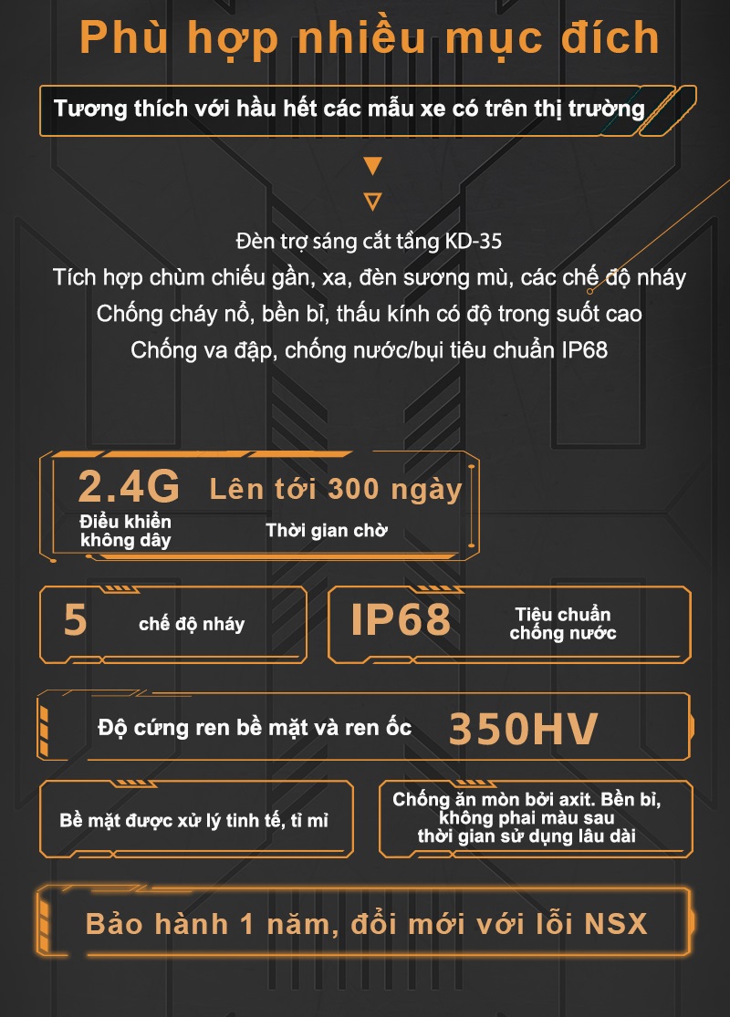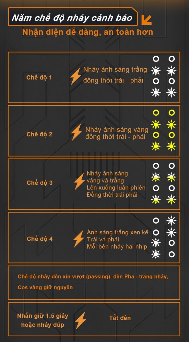 Độ sáng: pha 7000lm/cặp, cos 5500lm/cặp, pha + cos 7000lm/cặp