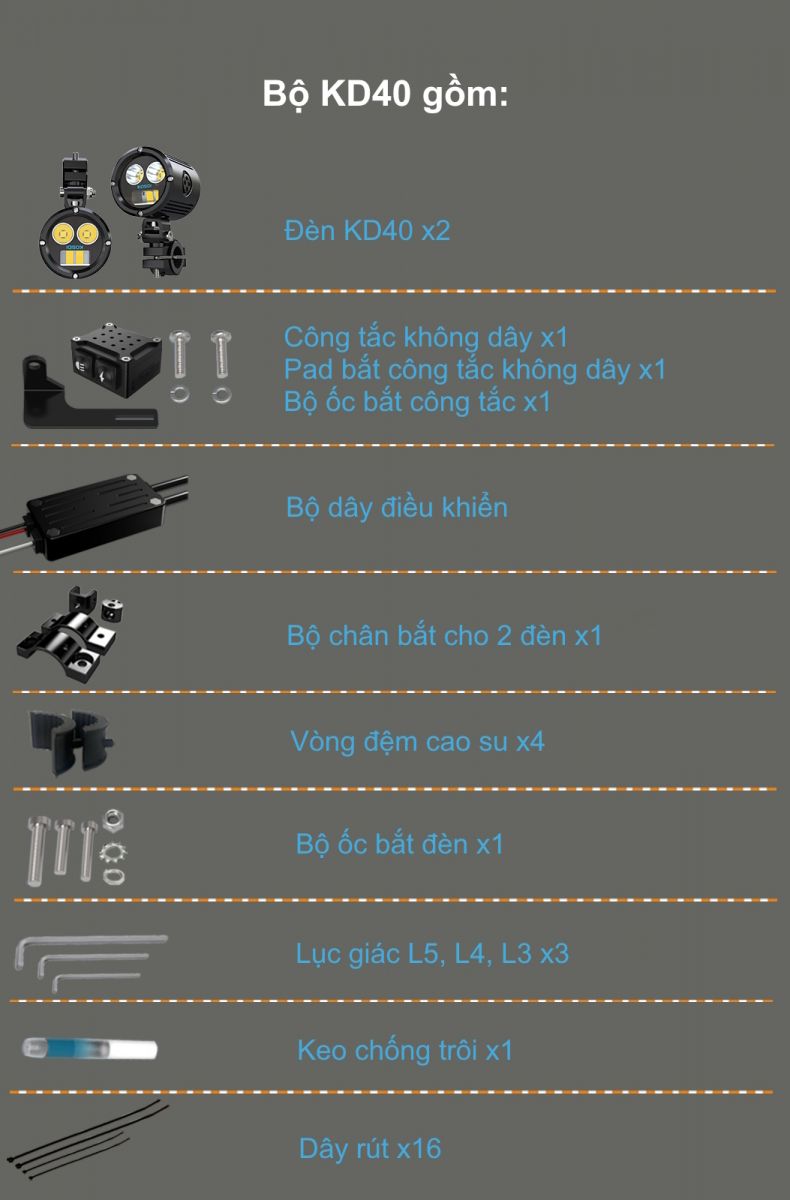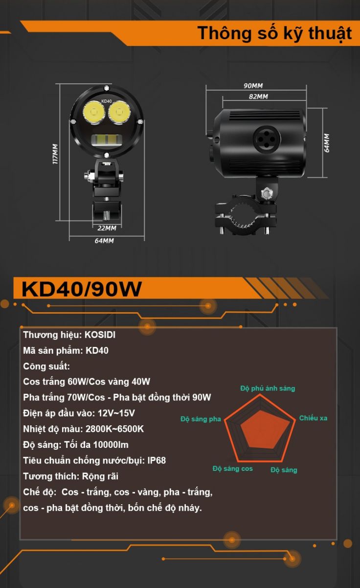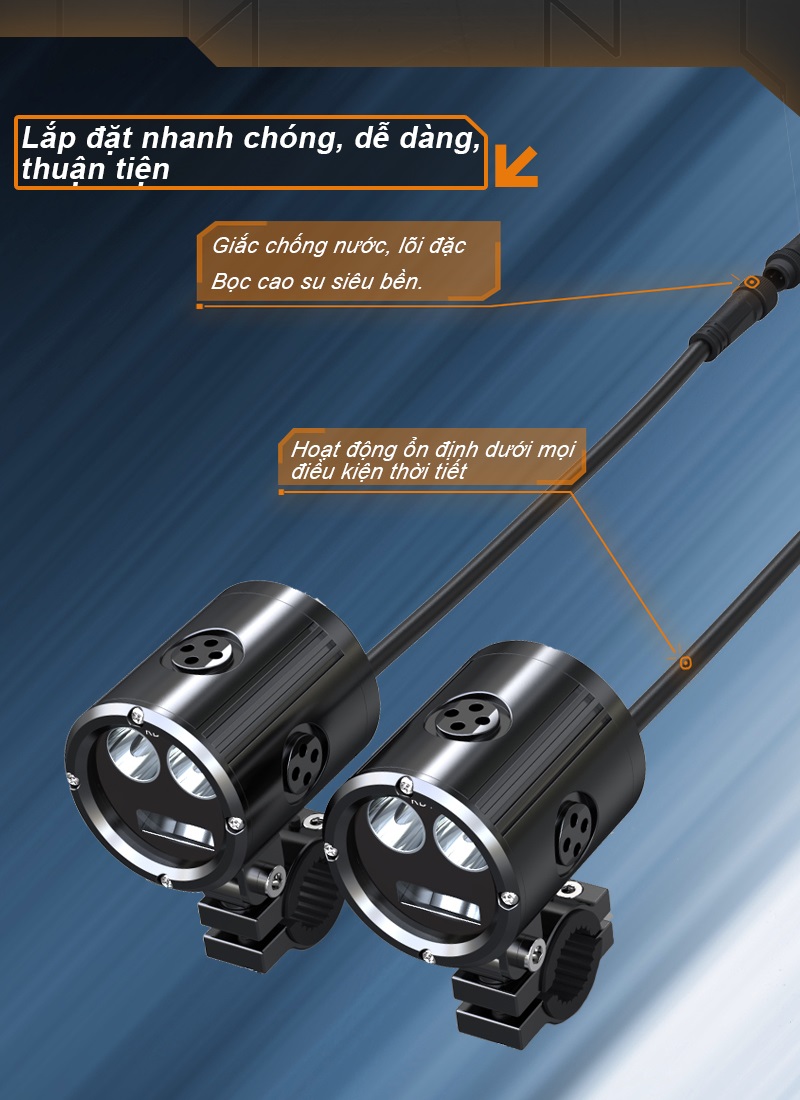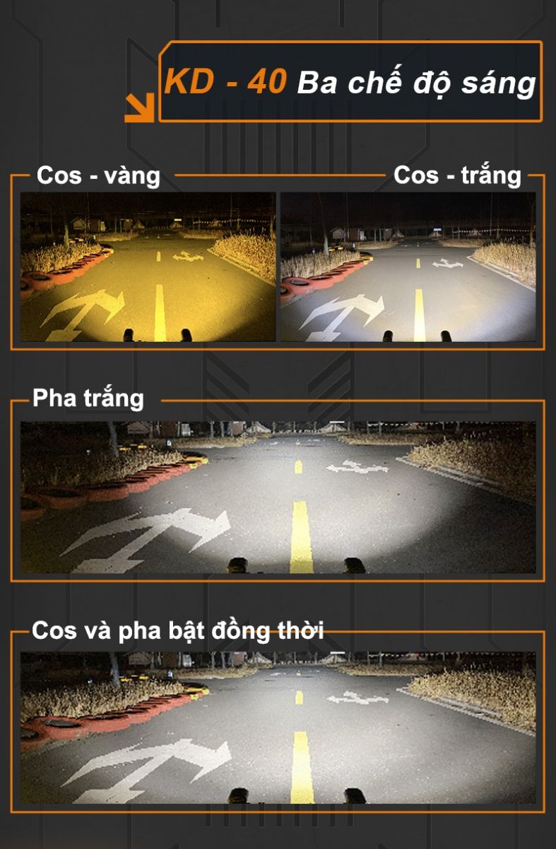 Độ sáng: pha 8000lm/cặp, cos trắng 5000lm/cặp, cos vàng 7000lm, pha + cos 10.000lm/cặp