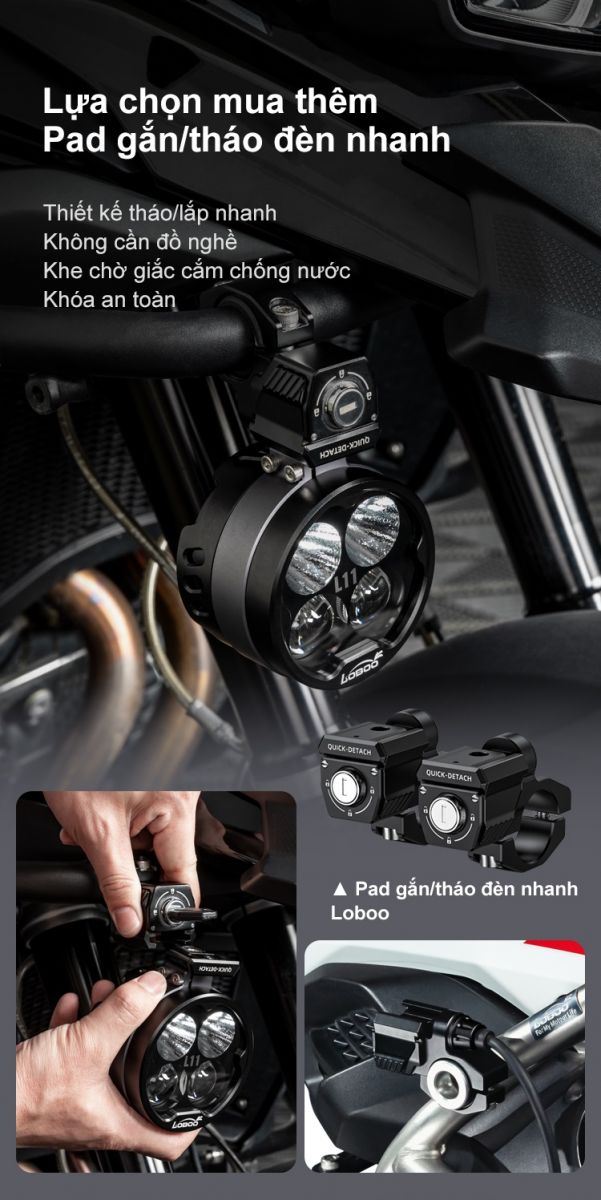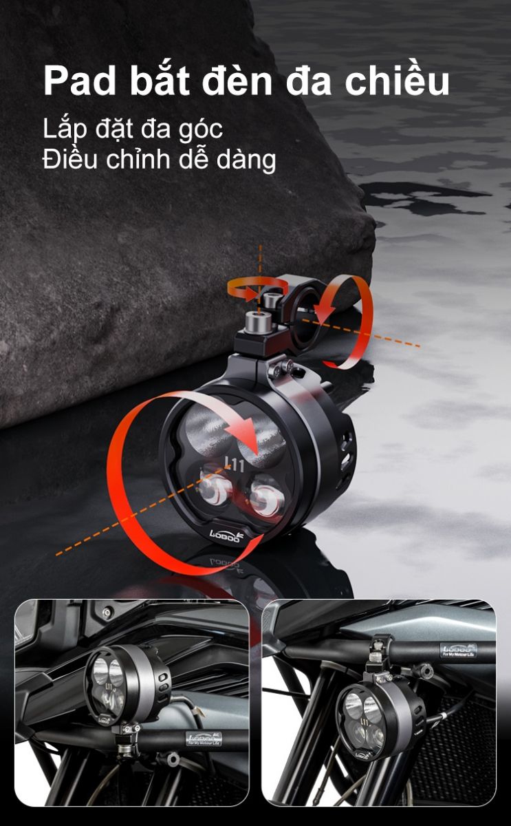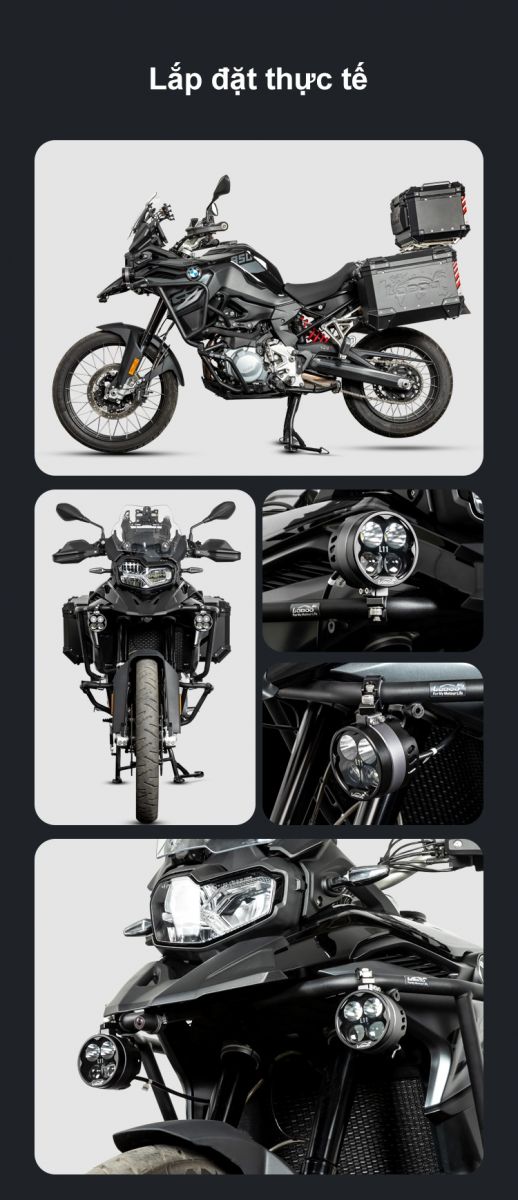 + Vui lòng lắp đèn vào thân xe hoặc thanh bảo vệ, nghiêm cấm lắp ở phần dưới của giảm xóc.
