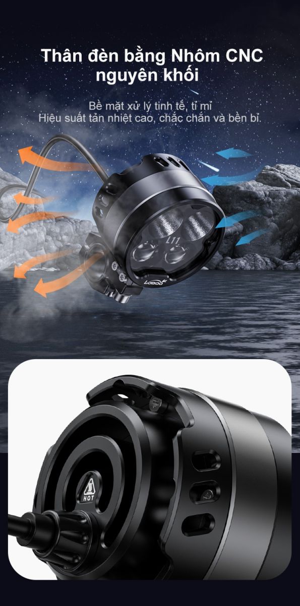 + Thân đèn sẽ sinh nhiệt cao trong quá trình hoạt động, không chạm vào để tránh bị bỏng.